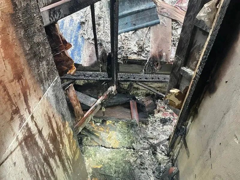 2022年2月14日江北区野水沟三钢厂老住宅1楼(住宅着火), 到场核实发现为堆积的杂物着火。
