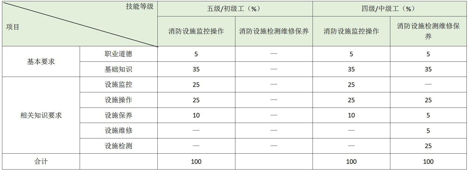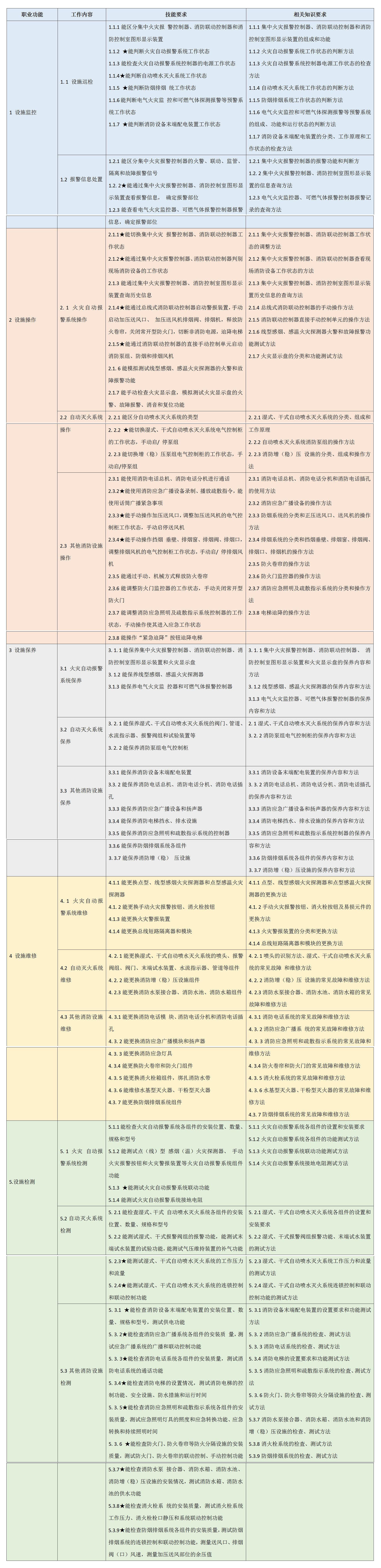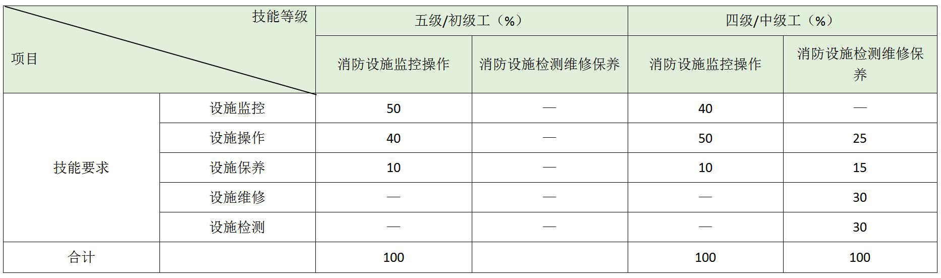 消防设施检测维修保养职业方向考核2、3、4、5项职业功能内容,共61项操作要求,20项关键技能。