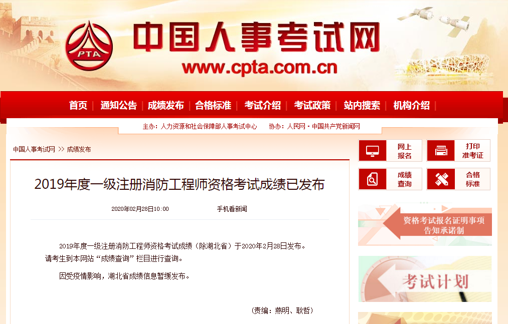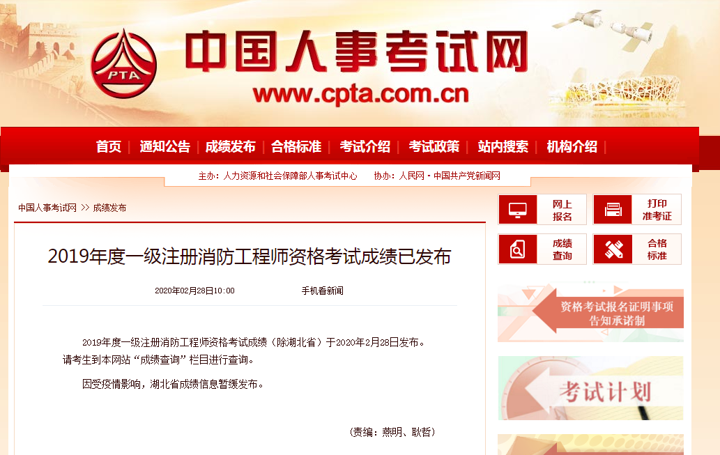 查分了,2019年度一级注册消防工程师成绩已出,附成绩查询网址...