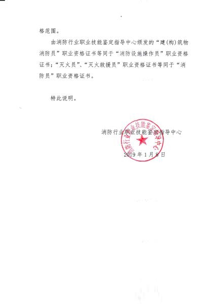 根据《中华人民共和国职业分类大典》, “ 建(构)筑物消防员”职业调整为“ 消防设施操作员”。