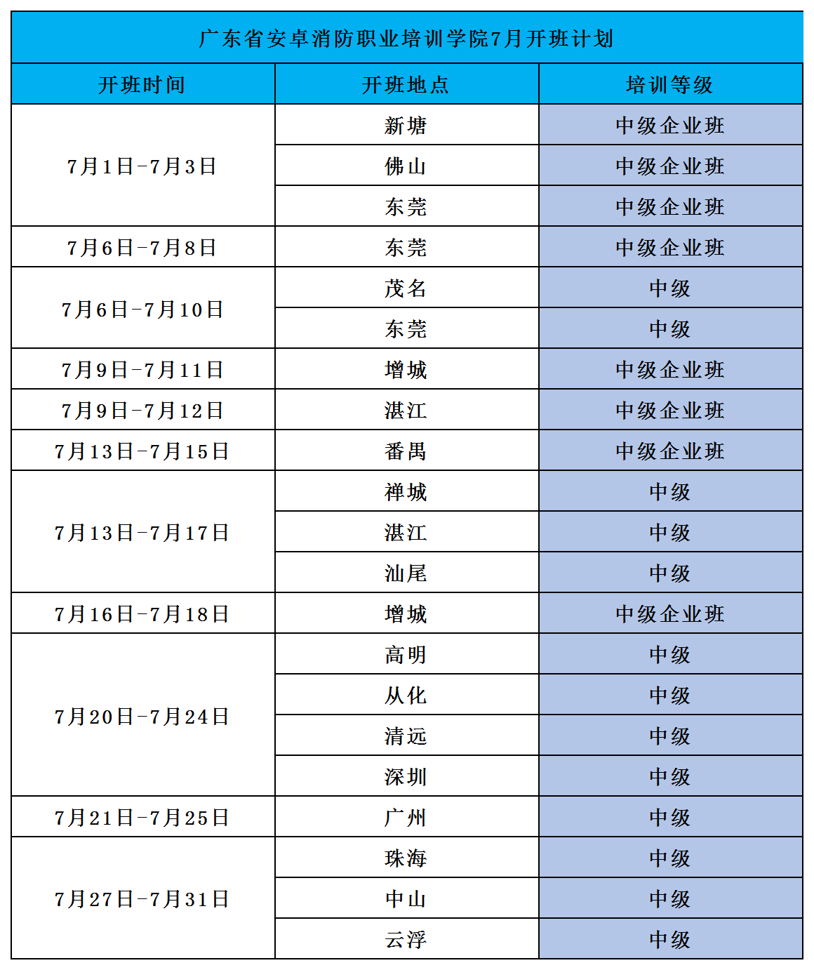 关于举办广东省第三季度7月份消防设施操作员(建构筑物消防员)培训考证,持证上岗的开班通知