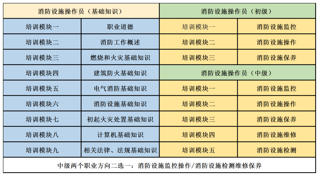 根据国家有关法律、法规,为贯彻落实《中华人民共和国消防法》、根据公安部推行《消防控制室管理及应急程序》(公消[2008]273号)和人力资源社会保障部办公厅、2019年6月消防救援局发布关于贯彻实施国家职业技能标准《 消防设施操作员》的通知:“依据原《 建(构)筑物消防员》职业技能标准考核取得的国家职业资格证书依然有效,与同等级相应职业方向的《消防设施操作员》证书通用。持初级(五级)证书的人员可监控、操作不具备联动控制功能的区域火灾自动报警系统及其他消防设施; 监控、操作设有联动控制设备的消防控制室和从事消防设施检测维修保养的人员,应持中级(四级)及以上等级证书。”将于 2020年1 月1日起实施。
