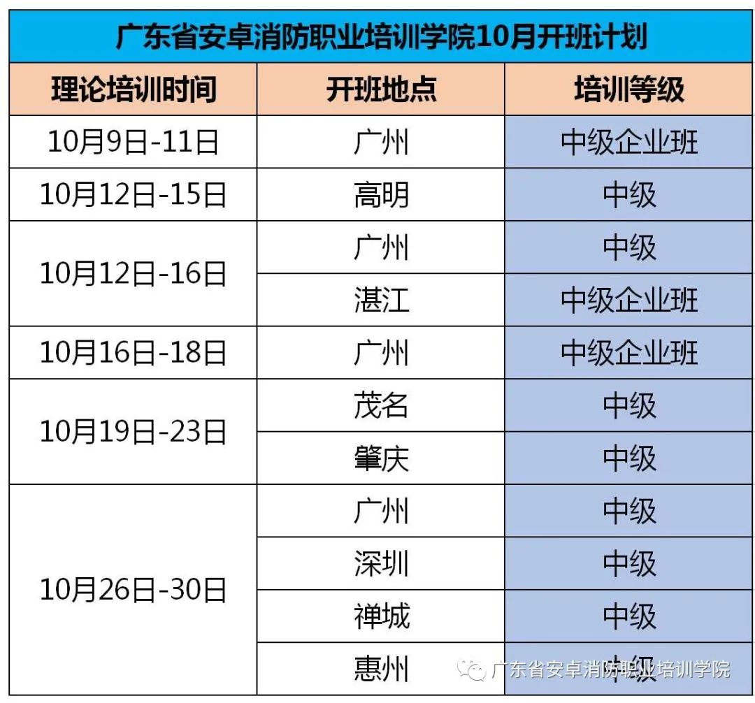 关于:举办广东省第四季度10月份消防设施操作员培训考证,持证上岗的开班通知