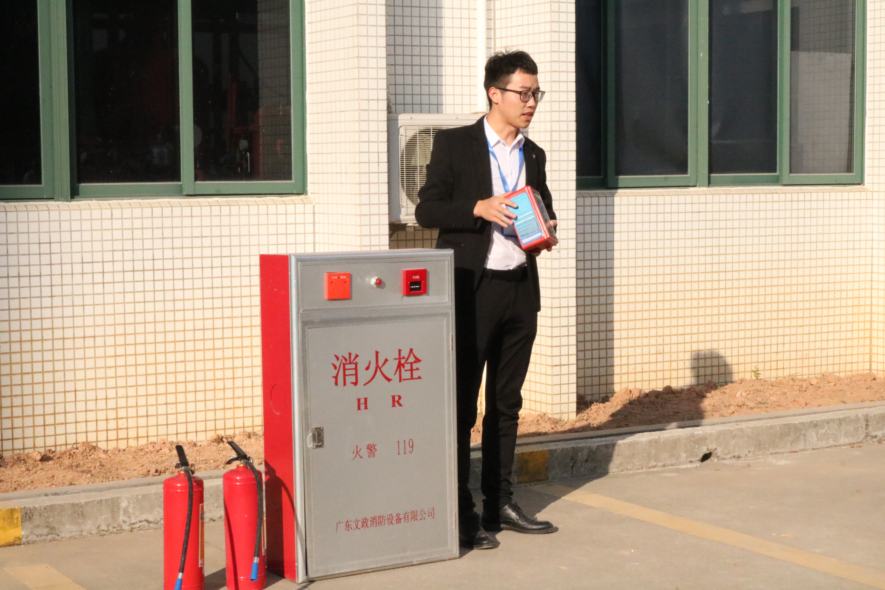 我院张老师为园区员工详细讲解了防烟面具的组成、使用方法和重要性。消防栓的连接和使用。干粉灭火器的组成和使用方式及干粉灭火器的使用范围。