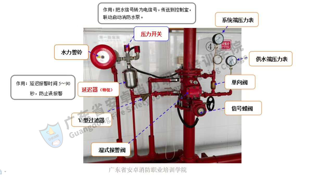 初级消防设施操作员、中级消防设施操作员实操考核知识点 识别自动洒水和湿式报警阀组的组成