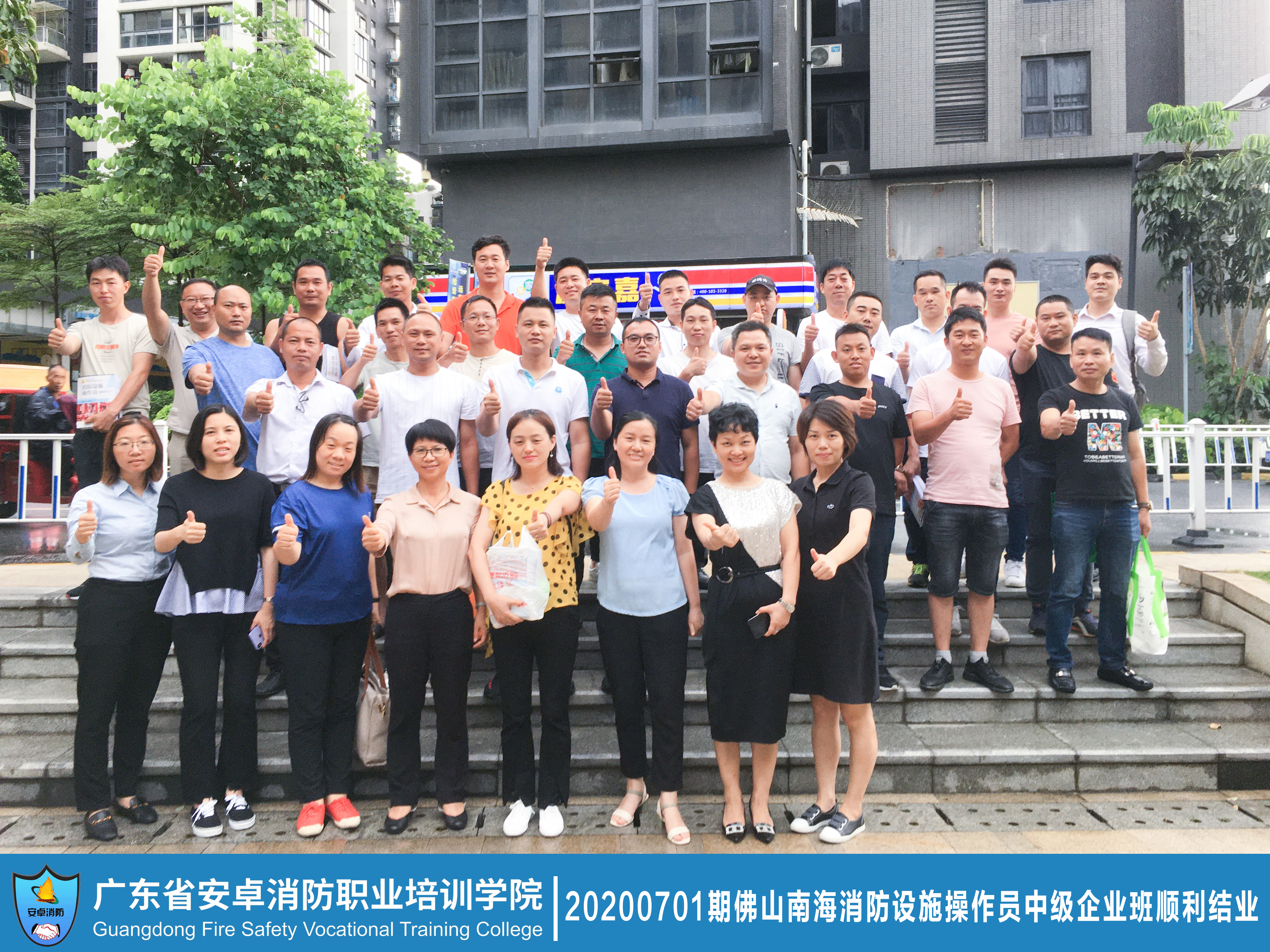 2020年7月3日安卓消防培训学院(佛山、东莞、新塘)中级消防设施操作员职业培训班顺利结业