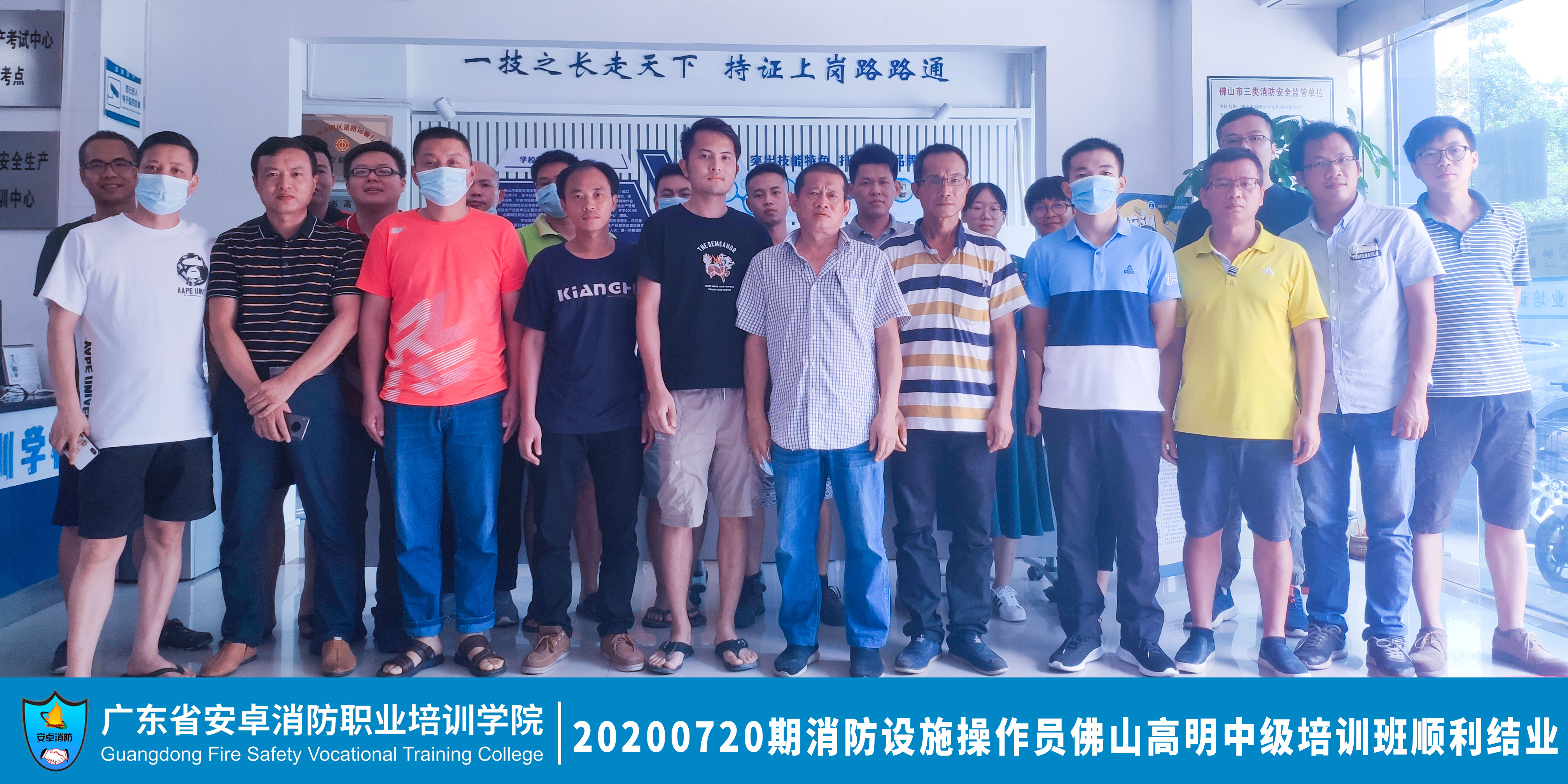 2020年7月24日安卓消防培训学院(深圳、清远、高明、从化)中级消防设施操作员职业培训班顺利结业