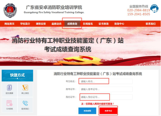 2)、点击“ 成绩查询”,输入“ 名字和身份证号码”之后,点击“ 查准考证”;