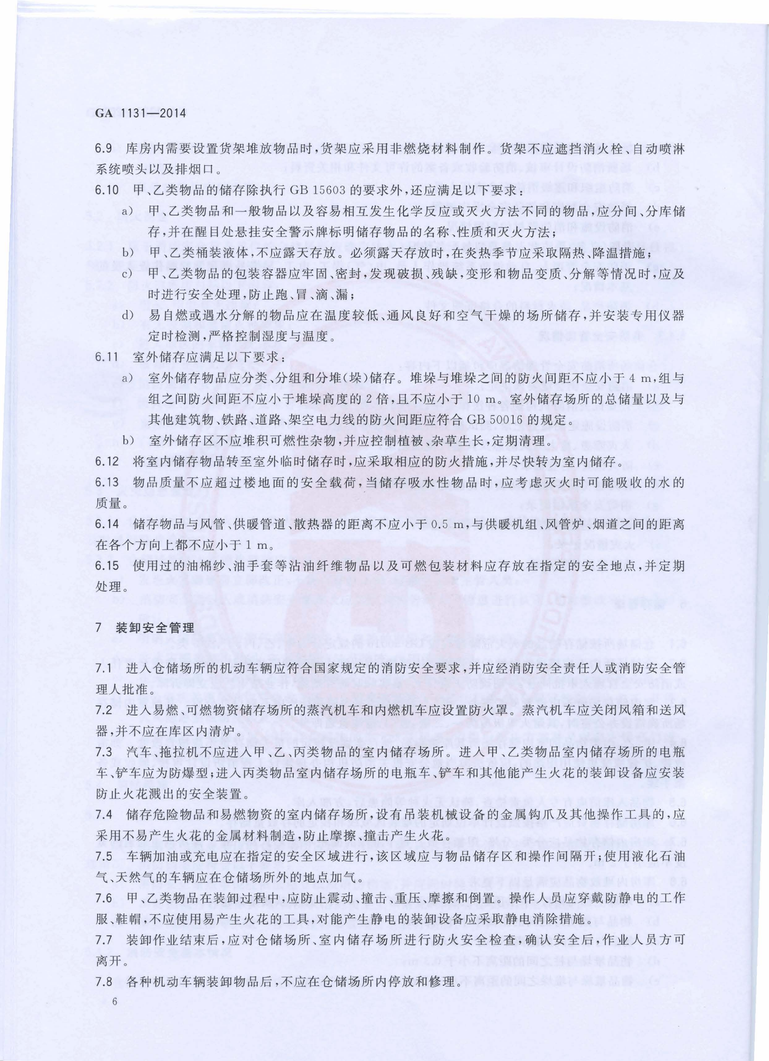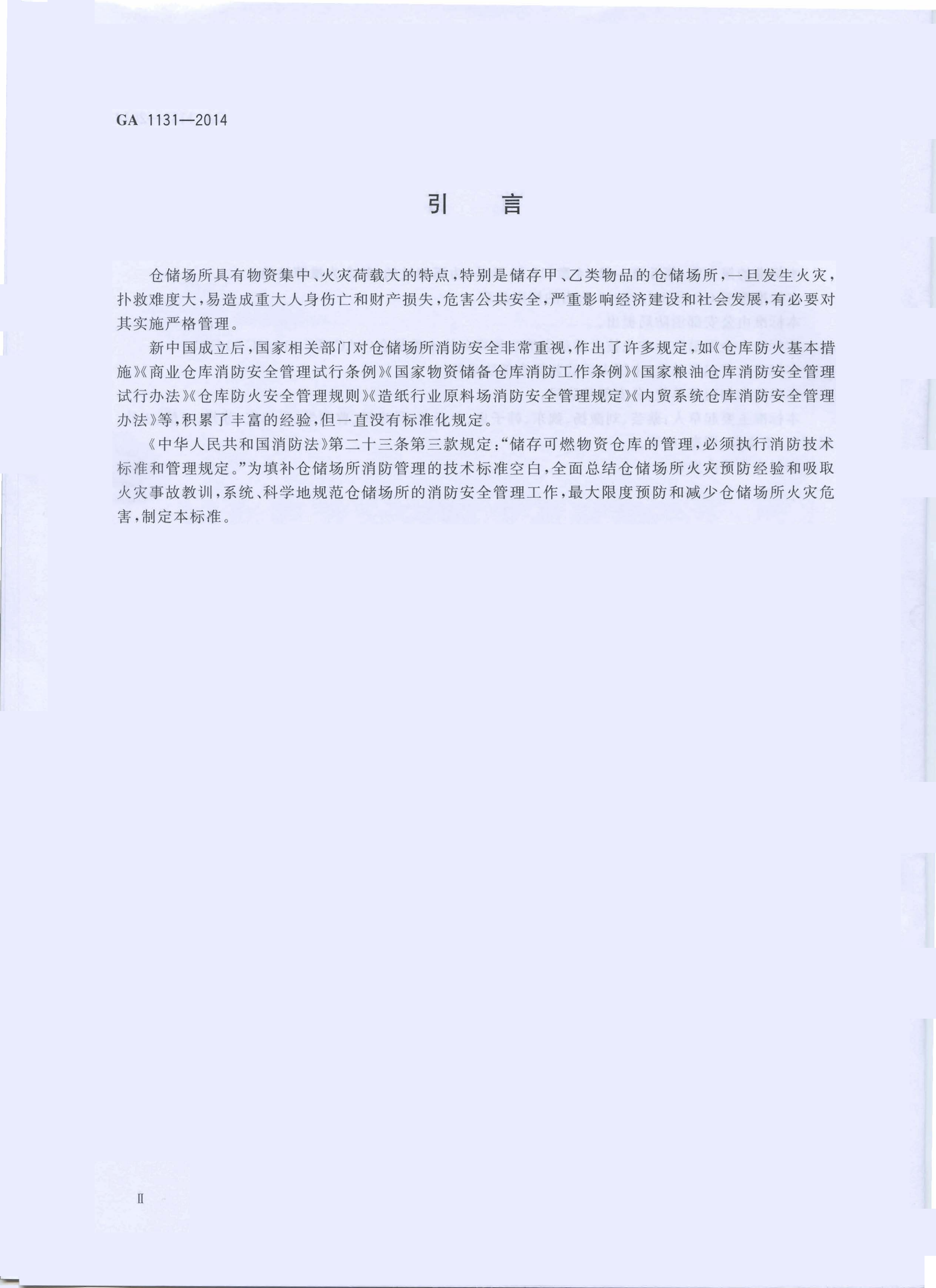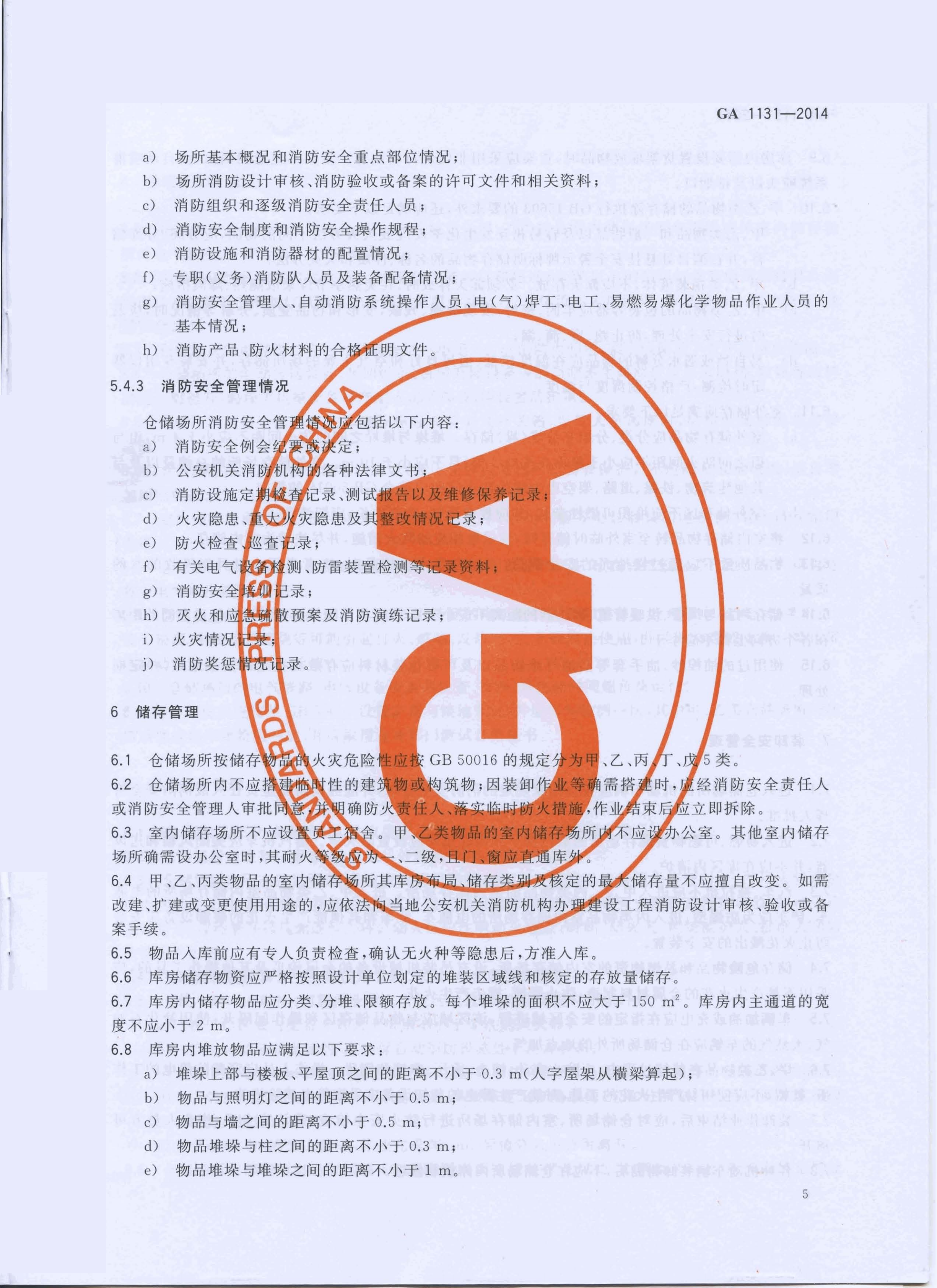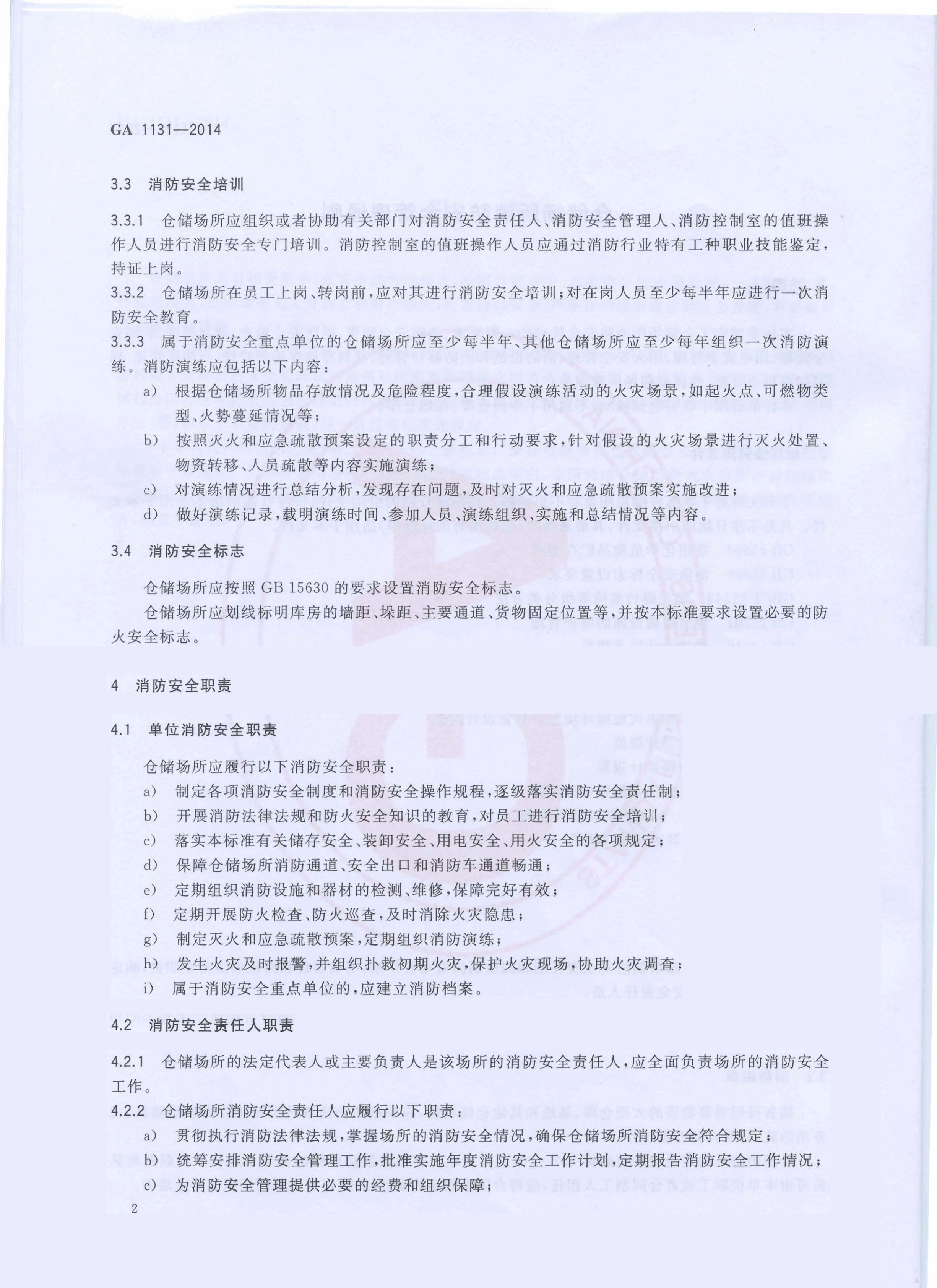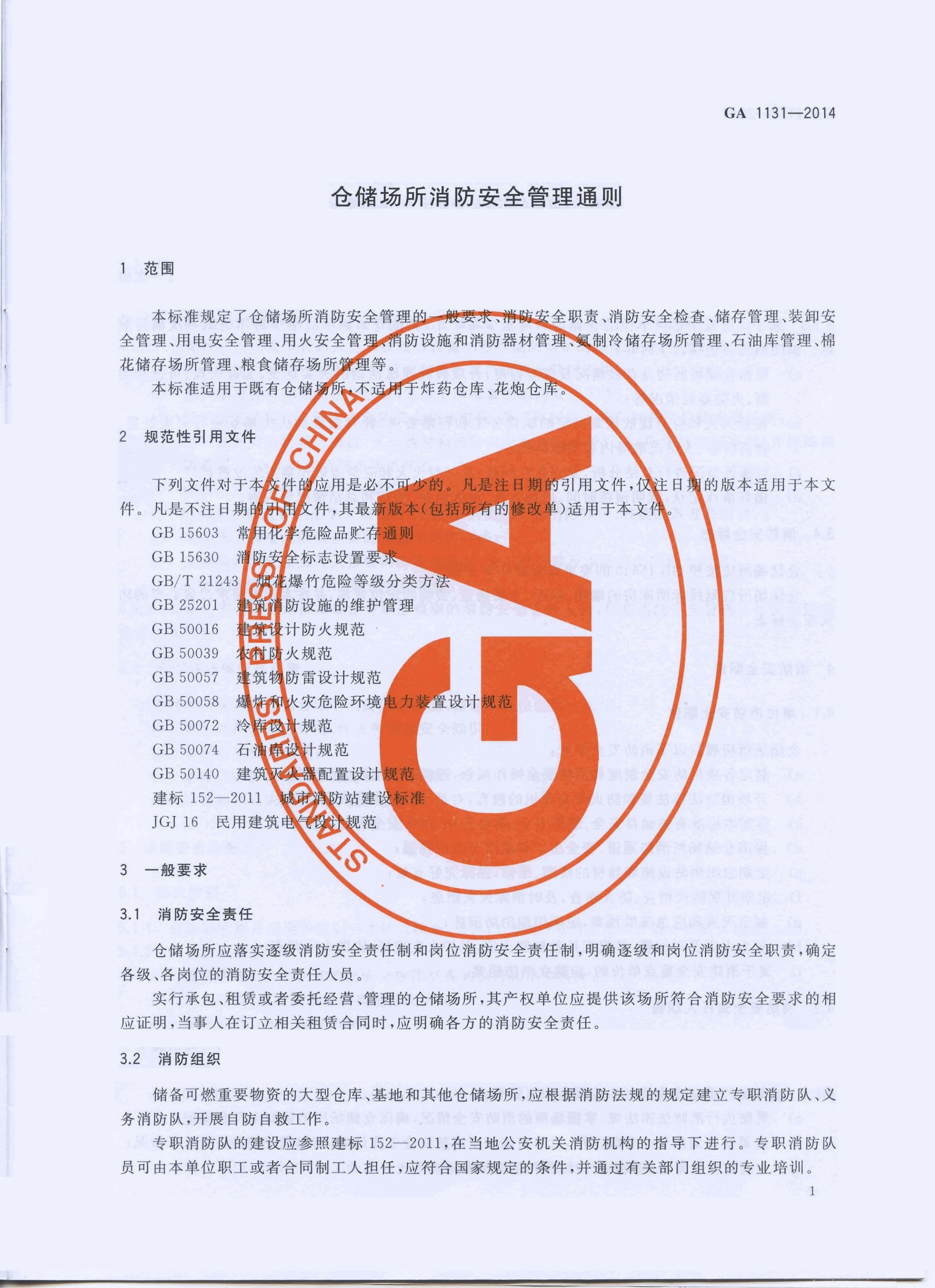 仓储场所消防安全管理通则 GA 1131—2014