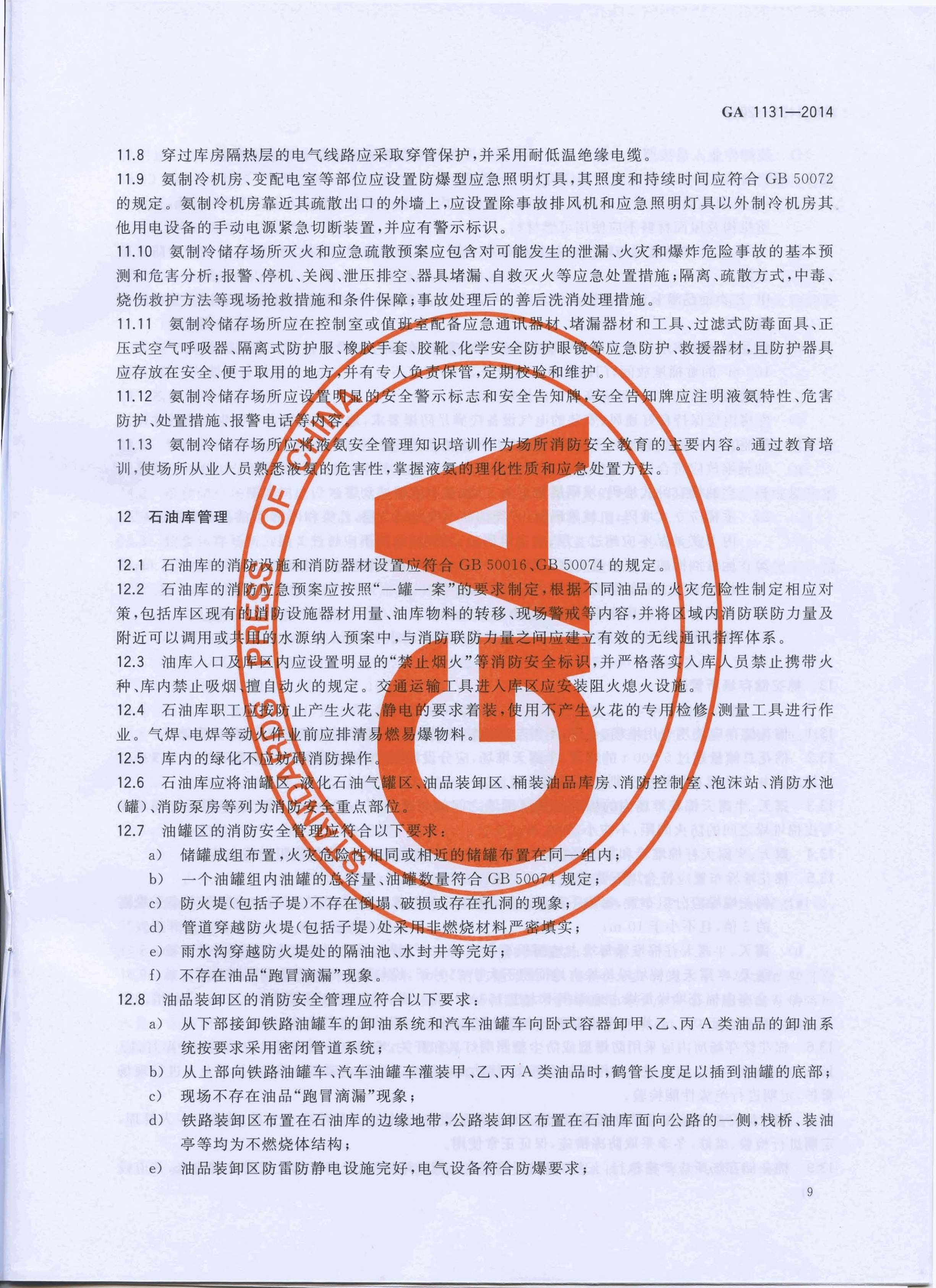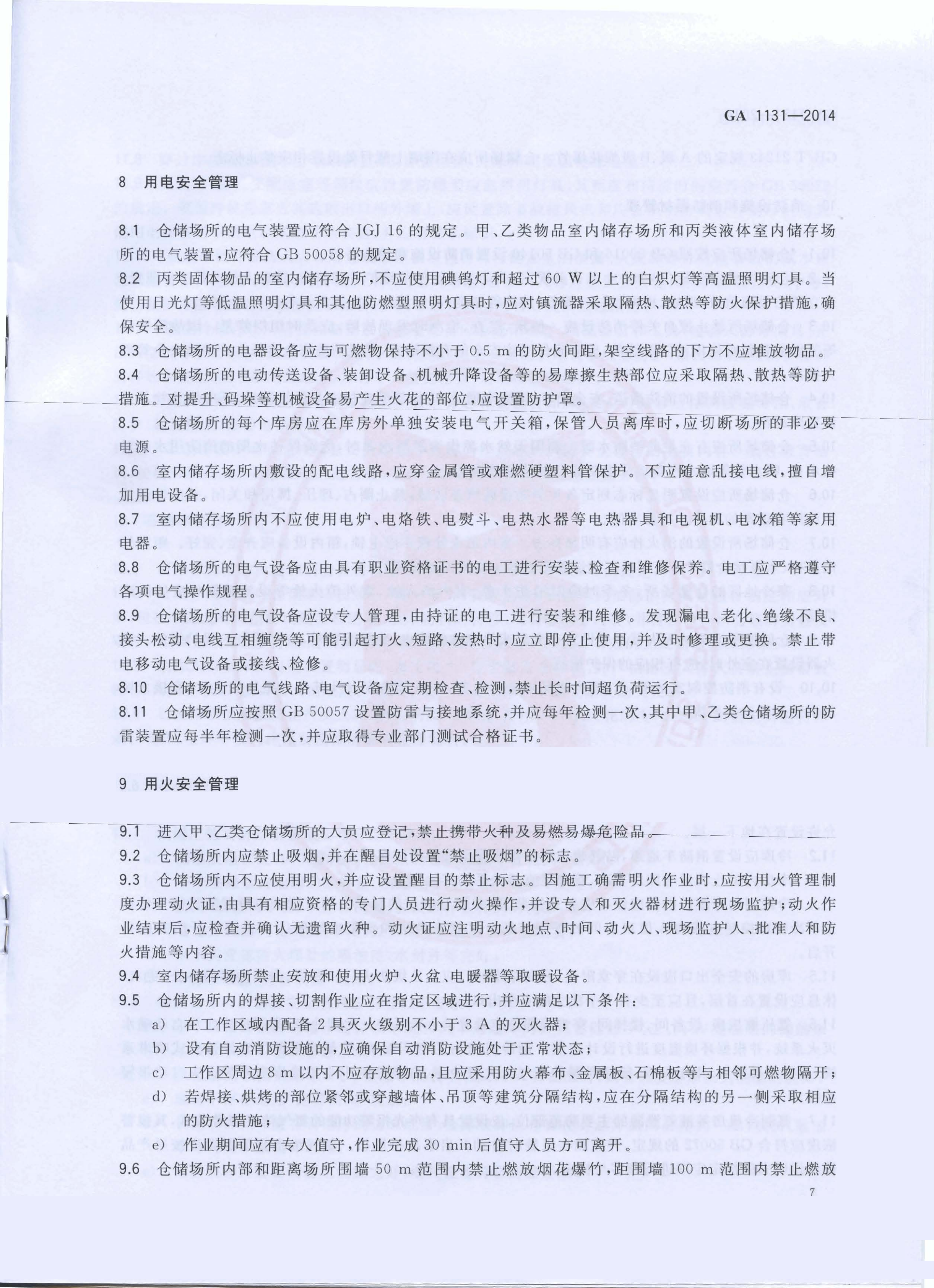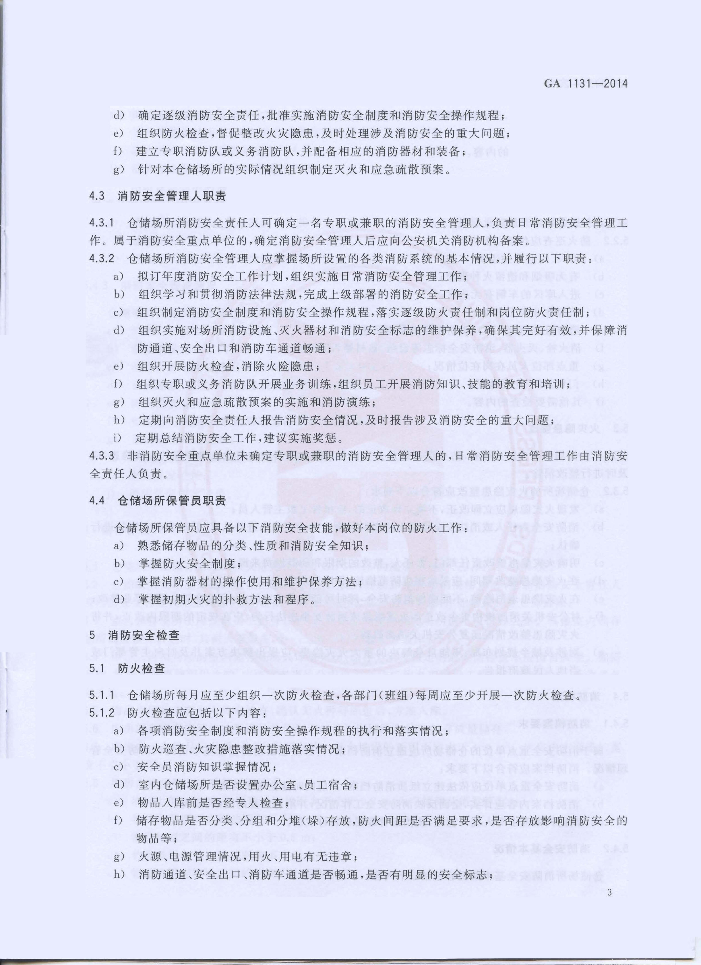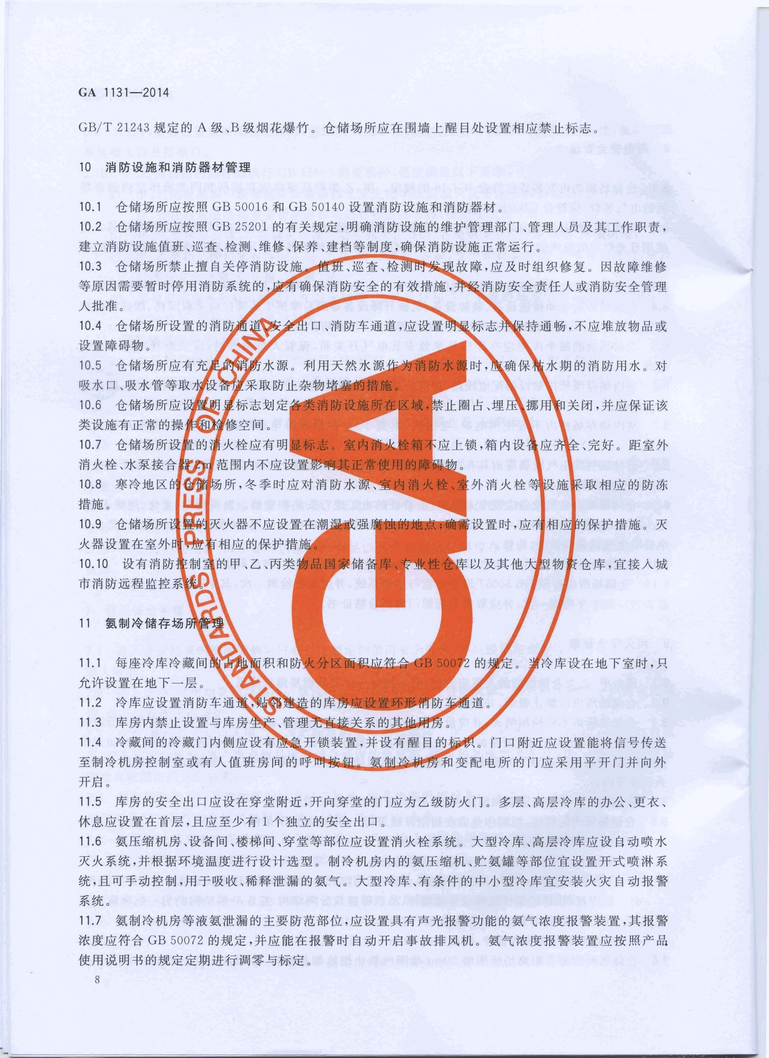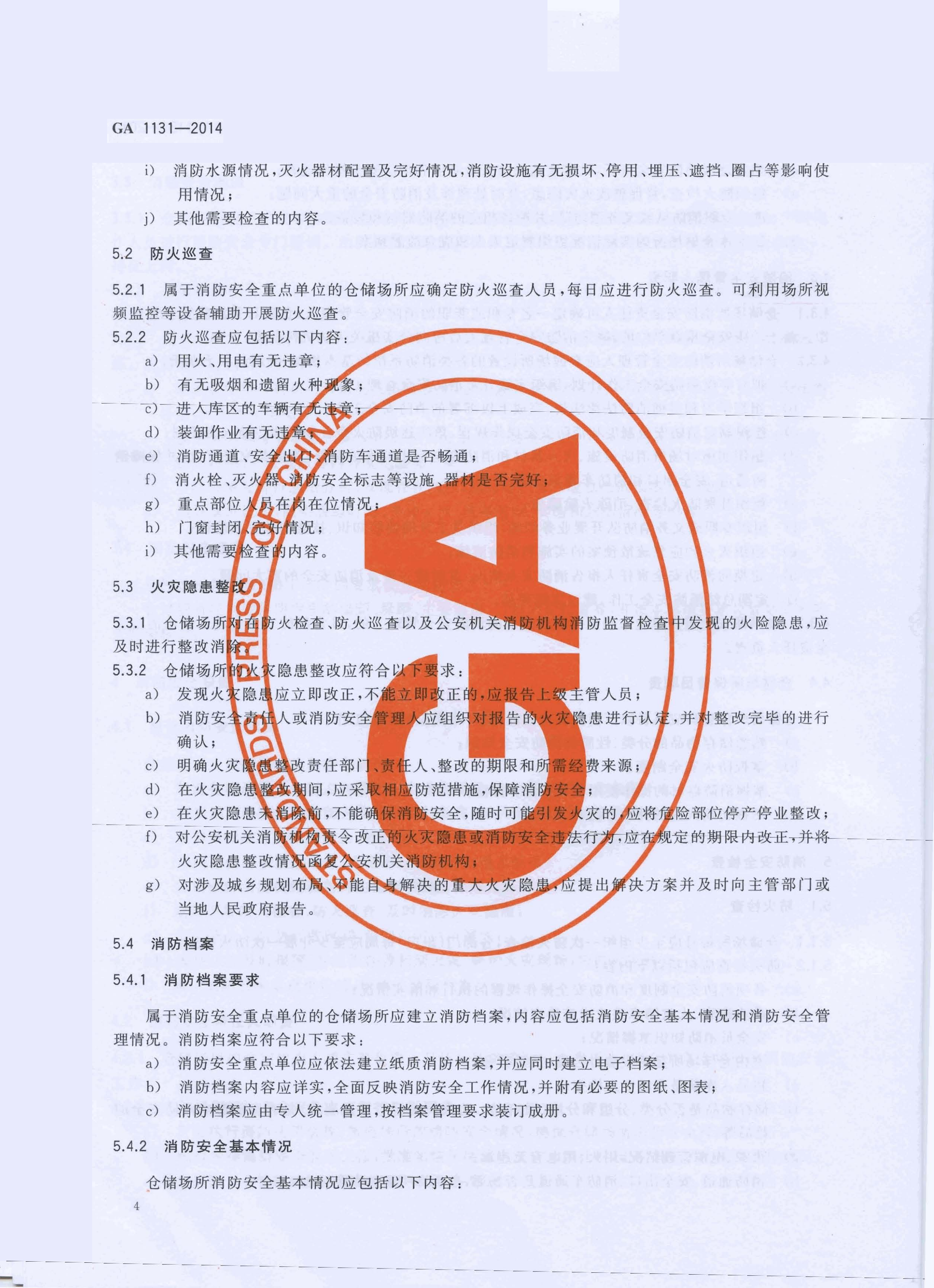 仓储场所消防安全管理通则 GA 1131—2014
