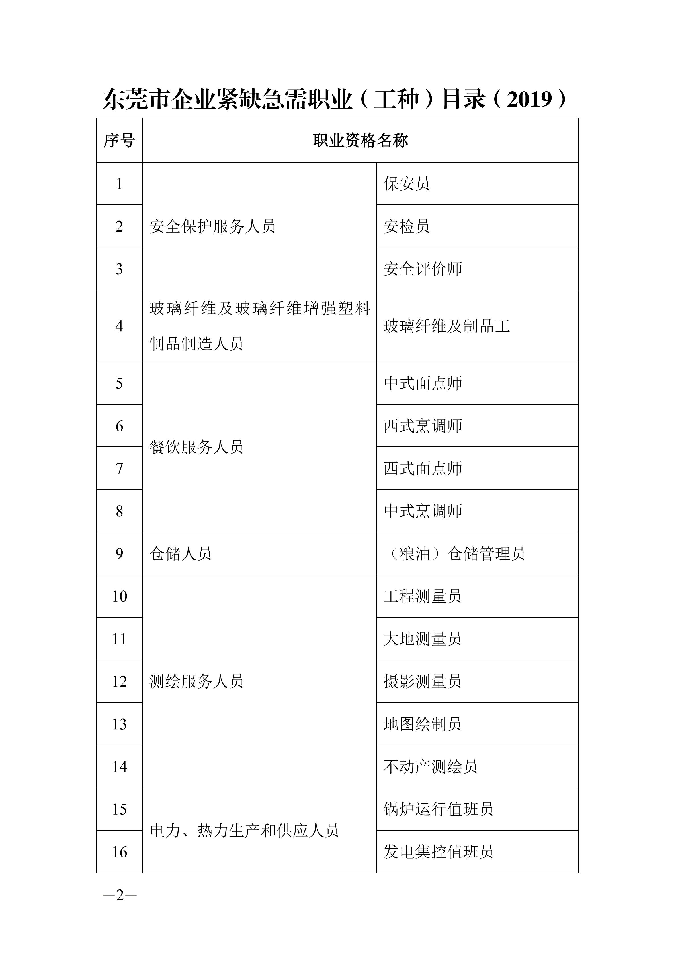 东莞市企业紧缺急需职业(工种)目录(2019)【消防设施操作员】