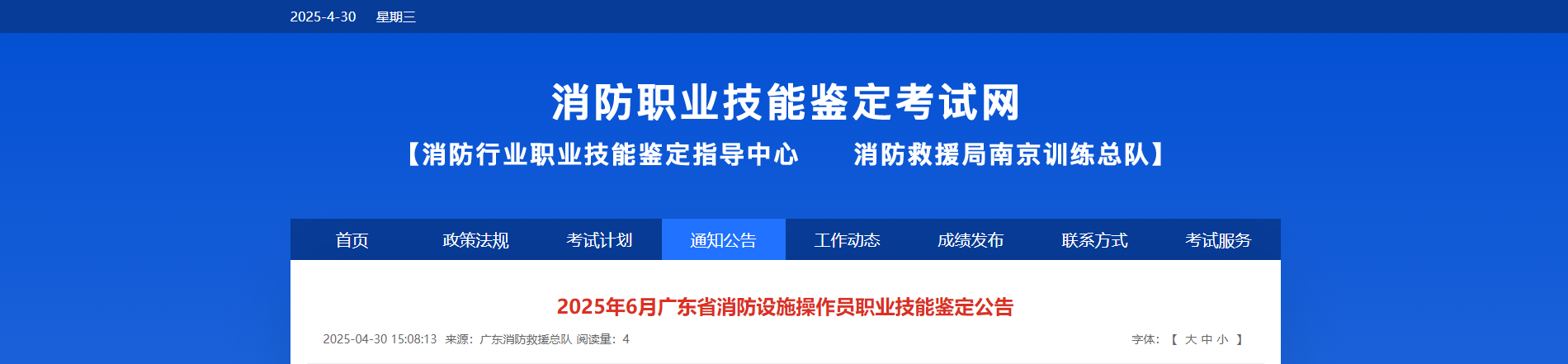 广东省消防救援总队消防行业职业技能鉴定站2025年6月消防设施操作员职业技能鉴定公告