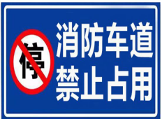 (五)在消防车通道两侧设置醒目的警示标牌,提示严禁占用消防车道,违者将承担相应法律责任等内容。警示标牌长宽不小于1m×0.6m(若受条件限制,无法满足醒目度要求,应按5:3比例加大标志的尺寸),底边离地高度不低于1.6m。