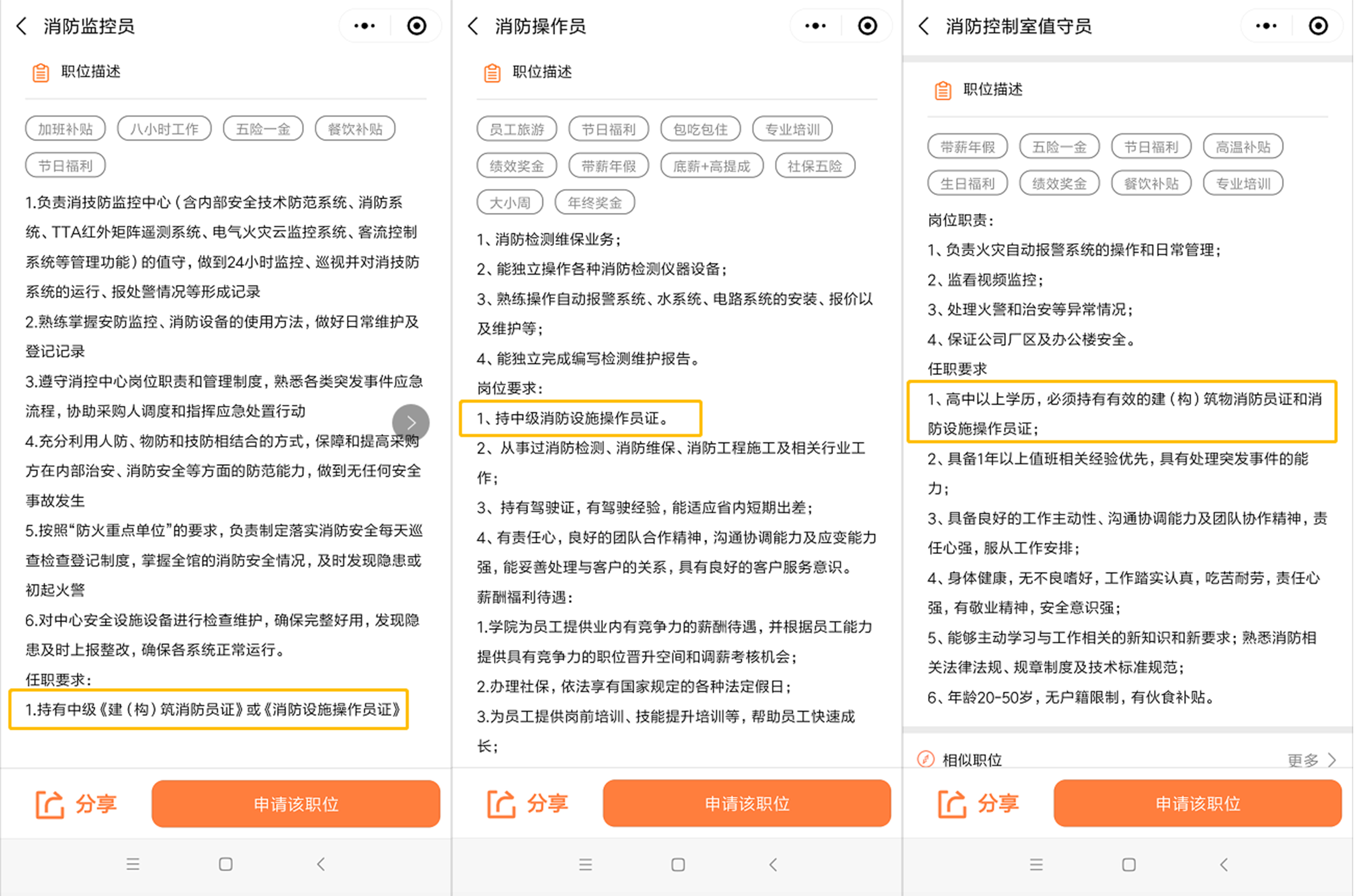 2 、重点防火单位必备证书, 消防小白入行必备,证书价值持续走高。
