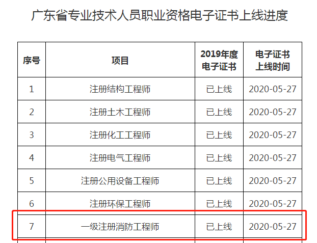 关于2019年度一级 注册消防工程师、勘察设计注册工程师执业资格考试广东考区合格人员电子证书上线的通知