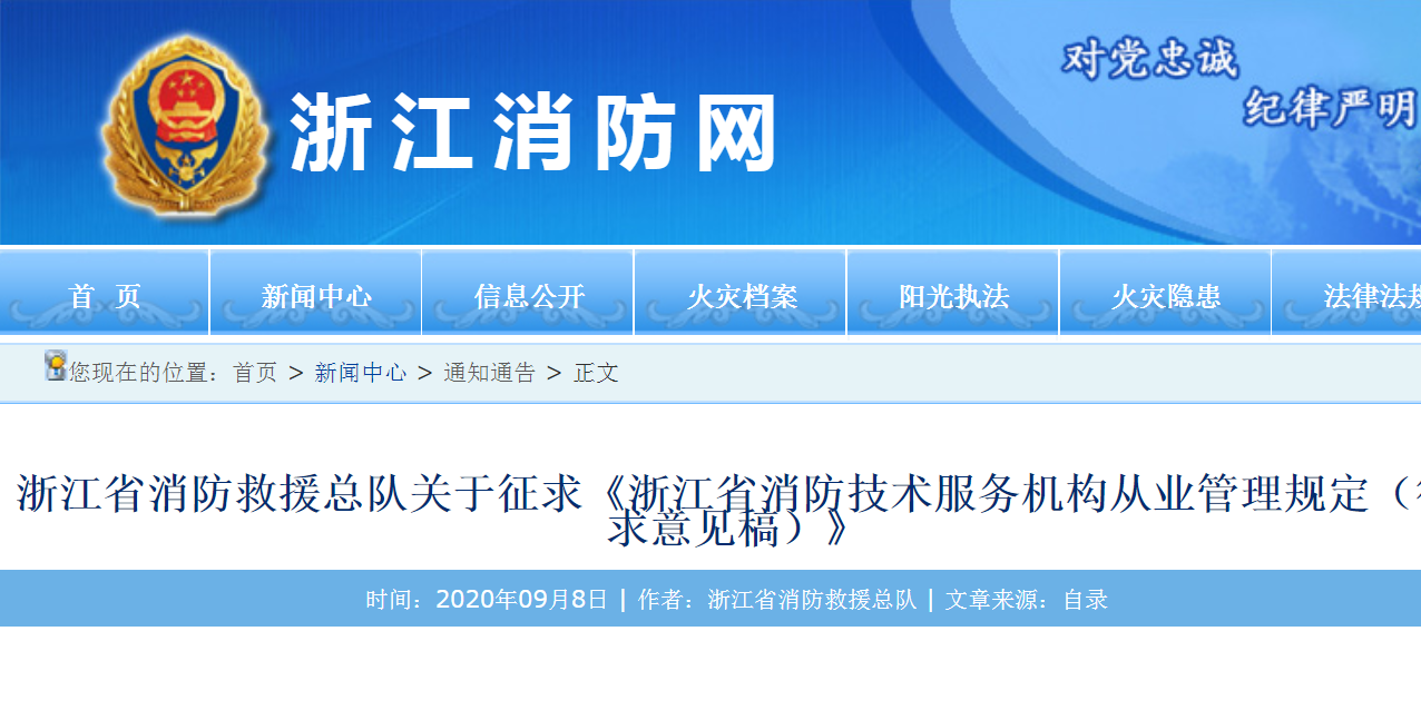 浙江省消防救援总队关于征求《浙江省消防技术服务机构从业管理规定(征求意见稿)》