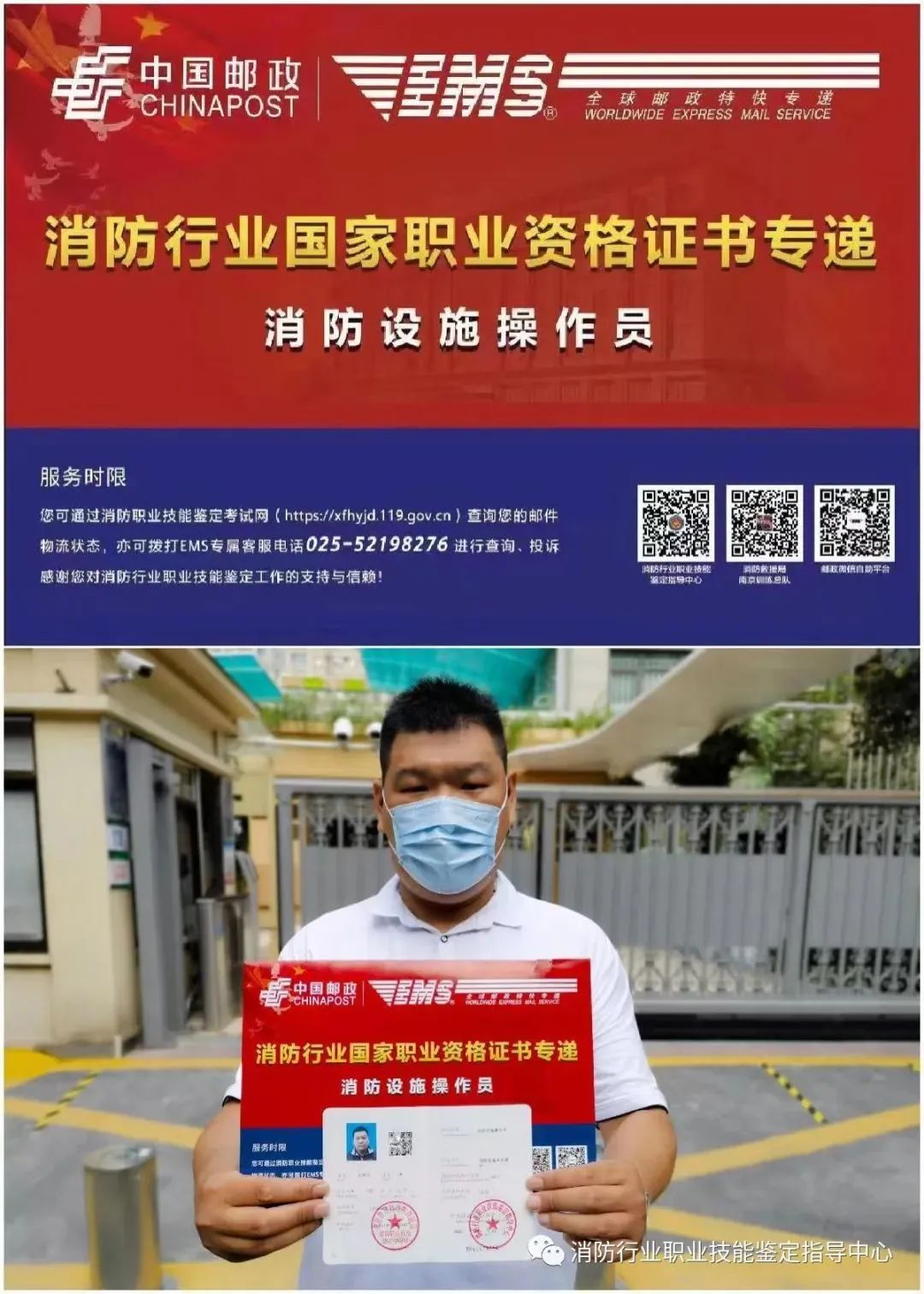 为提升职业资格证书发放时效,从即日起,我中心委托中国邮政速递EMS开展证书邮寄业务,实行“送证到家”服务。有需求的考生可登录我中心官网,在【个人资料】中登记收件地址信息和联系电话。证书邮寄前,邮政公司将联系考生预留电话核对本人信息,请留意客服电话025- 52198276或通知短信。