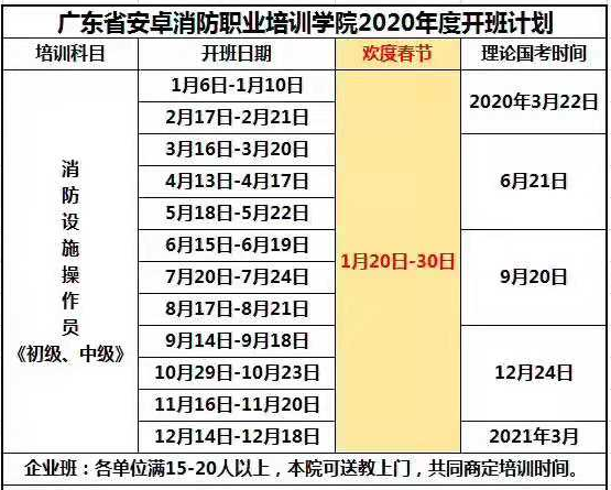 附:广东省安卓消防职业培训学院2020年度开班计划