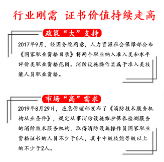 温馨提示:2020年1月1日起,新国家职业技能标准《 消防设施操作员》实施,消防设施操作员证将迎来重大变化,考证难度将进一步提升,证书从业方向将更细化,消防设施操作员职业资格证书将不再通用。