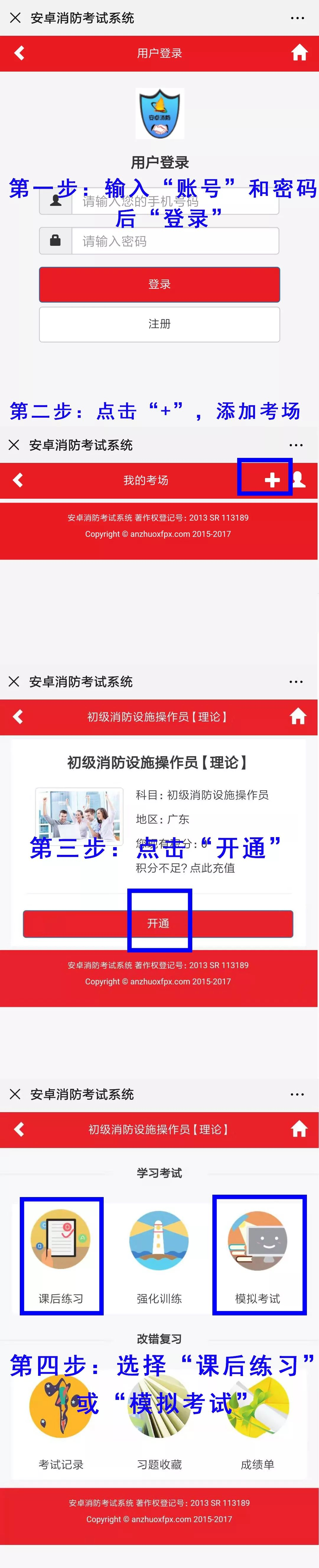 初级中级消防设施操作员免费模拟系统 ,进入题库步骤如下:1、广东省安卓 消防职业培训学院(公众号)➨学员天地➨在线题库