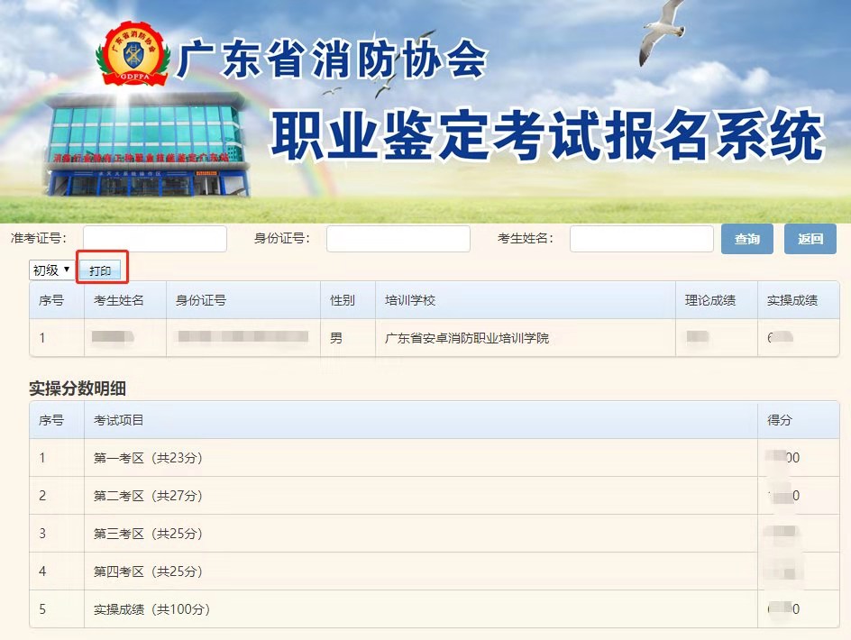 消防行业特有工种职业技能鉴定 消防设施操作员成绩单 打印流程